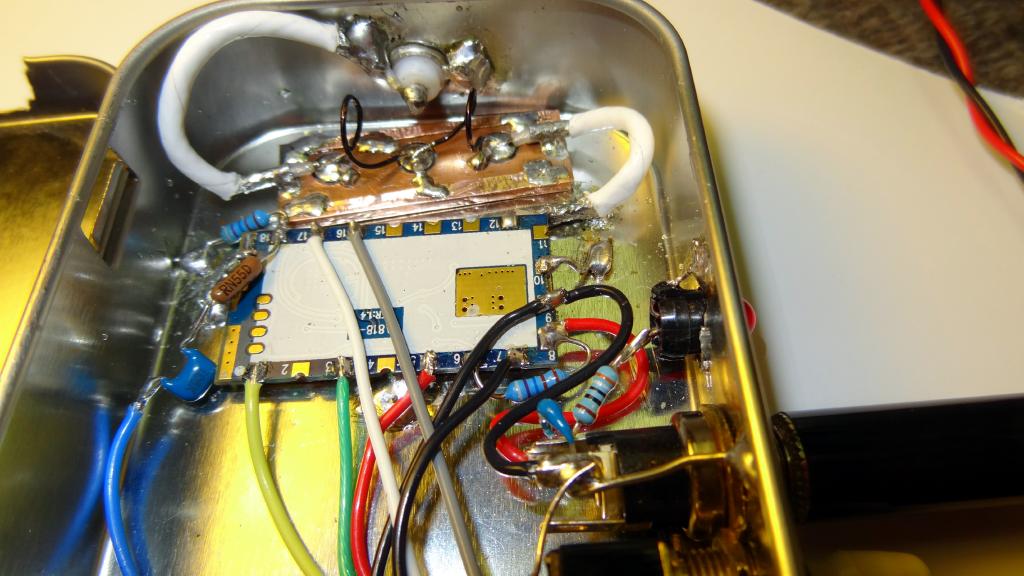 The module needs some external components and a container to be functional. Since this is RF and should be shielded I choose a metal box. Adafruit has some nice tin boxes in the Altoid box style that work nicely. I especially like the fact that they can be directly soldered to allowing close ground connections and direct soldering of components to the chassis. They are available for $2.50 from Adafruit: