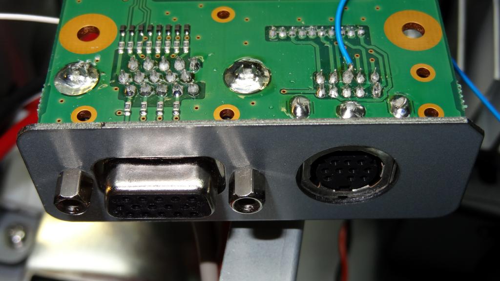 View of the board installed in the DR1 with cables not yet cleanly routed and tied.